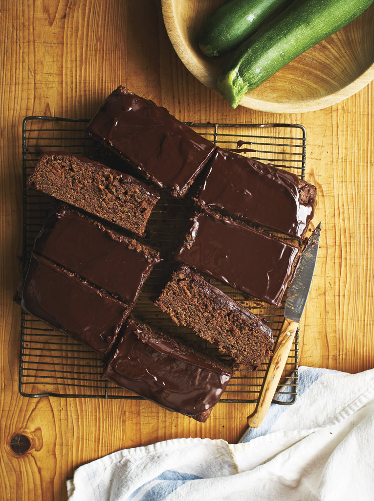 -Chocolate Sour Cream Zucchini Cake with Chocolate Glaze (page 250)